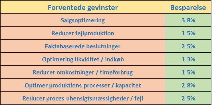 Forventede gevinster og besparelser